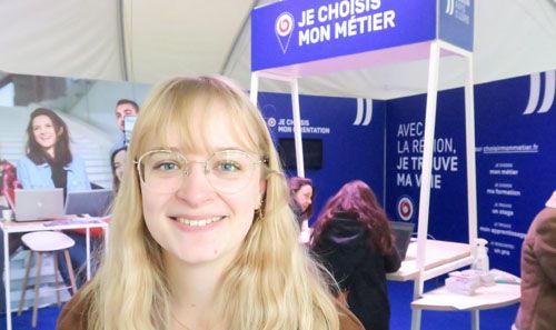 « J’ai vu les affiches en ville et cela m’a donné envie de venir. Et pourtant, j’ai un métier, je suis enseignante. Mais je réfléchis à la manière dont je pourrais enrichir mon parcours professionnel. Je m’intéresse au spectacle vivant et j’ai trouvé dans l’espace "Je choisis mon métier" des fiches pratiques très bien faites qui vont me permettre de penser à cela. »