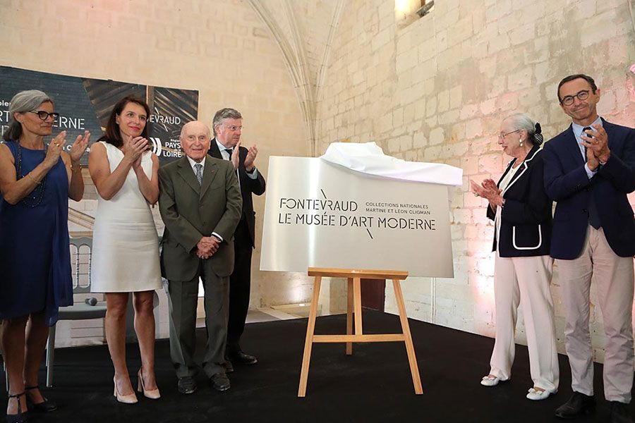 Le vendredi 5 juillet, à l’occasion d’une cérémonie symbolique de pose de première pierre, Martine et Léon Cligman, ont dévoilé avec Christelle Morançais, présidente de la Région des Pays de la Loire, Claude d’Harcourt, préfet de la région Pays de la Loire, Bruno Retailleau président du Centre culturel de l’Ouest et Régine Catin, maire de Fontevraud, une plaque « Fontevraud Le musée d’art moderne – Collections nationales Martine et Léon Cligman » qui prendra place dans le musée lors de son inauguration en mai 2020.