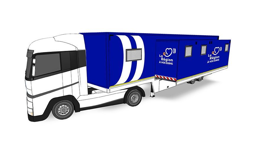 La Région à vos soins, c’est une offre globale de santé, de prévention et de dépistage, avec quatre espaces de consultation embarquées dans un camion 100 % électrique. Le camion sera équipé d'une salle d'attente, d’un espace d’accueil et d’orientation, de sanitaires, de deux salles de consultation pluridisciplinaire modulables pouvant accueillir des spécialistes (gynécologie, odontologie…), et de deux boxes de consultation de médecine générale accueillant des internes en médecine. Un fonctionnement innovant grâce à un partenariat avec la Faculté de santé d’Angers. L’équipe soignante se composera d’un médecin coordinateur et maitre de stage, recruté par l’association À vos soins, et d’internes en 3e année de médecine pour des consultations de médecine générale.