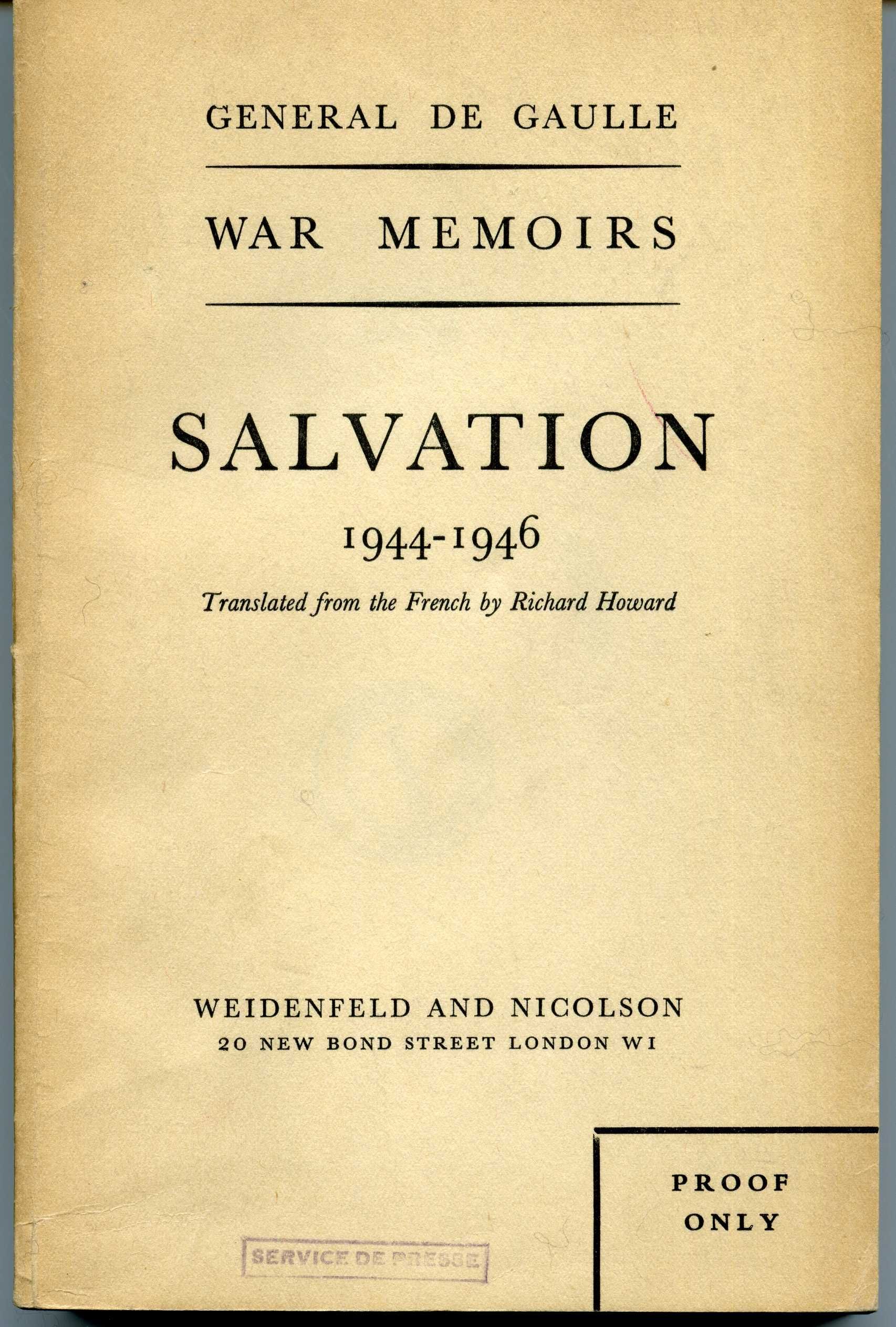 L’ouvrage présenté est le troisième tome des mémoires de guerre de De Gaulle, traduit en anglais. Le tome 1 s’intitule « l’Appel, 1940-1942 » et le tome 2 « l’Unité, 1942-1944 ». Le général de Gaulle commença la rédaction, après sa démission du gouvernement du 20 janvier 1946 jusqu’en 1959. Dans ces mémoires, il relate le déroulement de la Seconde Guerre mondiale.