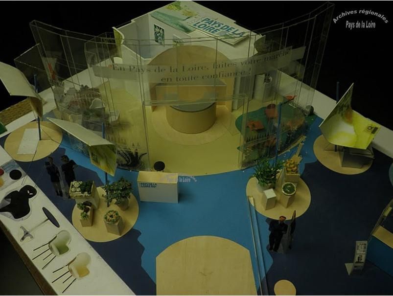 Référence des documents présentés : photographie de la maquette du stand de la Région des Pays de la Loire pour le Salon de l’Agriculture 2006 (archives de la Direction de la Communication, 29W2) ; revue de presse sur la vie publique du Président du Conseil régional (archives du Cabinet, 25W113, mars 1981) ; dossier de préparation du Salon de l’Agriculture 1991 (archives du Service Relations publiques, cote provisoire anc-138).