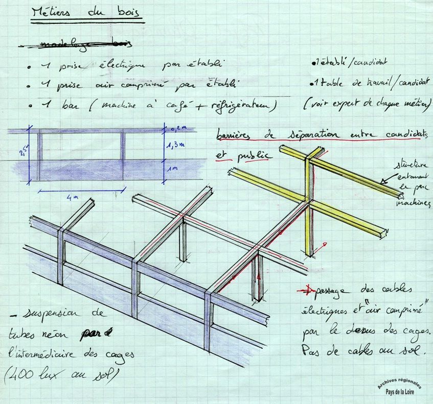 - 34W 308 : croquis de stand réalisé pour l’organisation des finales nationales du bois à la Beaujoire à Nantes (1995) (Archives Direction Communication).