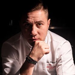 - Cuire les pommes de terre à l’eau et égoutter. Puis, les mélanger avec les ingrédients restants, passer au mixeur pour obtenir une masse crémeuse. - Assaisonner, verser dans un siphon, gazer 2 fois.