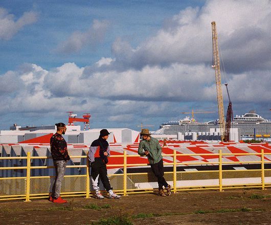 « On a fait une vraie rencontre avec un décor, celui de Saint-Nazaire. Tout en étant en région, on avait la volonté d’éviter la carte postale. […] J’aime l’idée de traverser des décors sans vraiment savoir où on est : on a la sensation d’être dans une ville portuaire, assez rugueuse, assez rude, sans pouvoir l’identifier. » Gallien Guibert