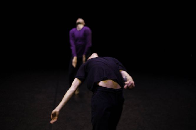 La distribution est prévue pour quatre interprètes, mais c’est bien un duo que vous allez découvrir sur scène. Dans les six combinaisons de duo possibles, je choisis lequel va s’élancer et entrer en dialogue avec le lieu que nous investissons. Aucun des rôles n’appartient à un interprète et chacun d’eux connaît l’ensemble des partitions. À la manière de ce jeu enfantin Shifumi, et en direct devant le public, les interprètes choisissent les rôles, parfois d’en changer en cours de jeu même, le temps et les trajectoires dans l’espace. Il s’opère un alors un défi chaque fois renouvelé, celui d’être en accord, vivant et en écoute avec son partenaire. Trois versions ont été conçues en simultané : dans un rapport classique dit frontal, dans une version où le public est sur scène installé dans un U amoureux et dans une version in situ pour des lieux non dédiés. Infinité est une création au temps présent et offre ainsi à la pièce une infinité de visages.